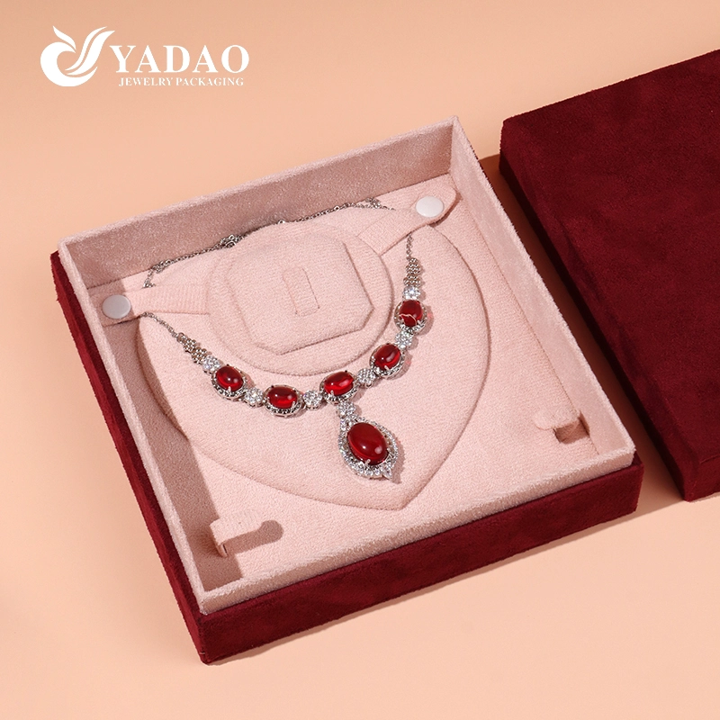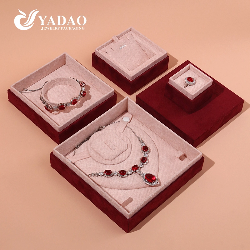 La collection de boîtes à bijoux en velours YADAO est une série d'emballages de bijoux de luxe haut de gamme fabriqués à partir de tissu de velours ultra fin de qualité supérieure. Doté d'une texture délicate exquise, d'un toucher doux et d'un ton rouge vin élégant, ce coffret à bijoux améliore parfaitement l'expérience d'affichage, de stockage et d'offre de bagues, pendentifs, bracelets et ensembles de bijoux complets.