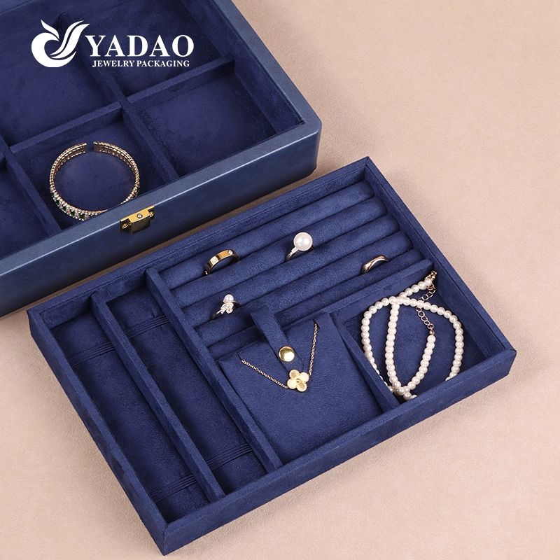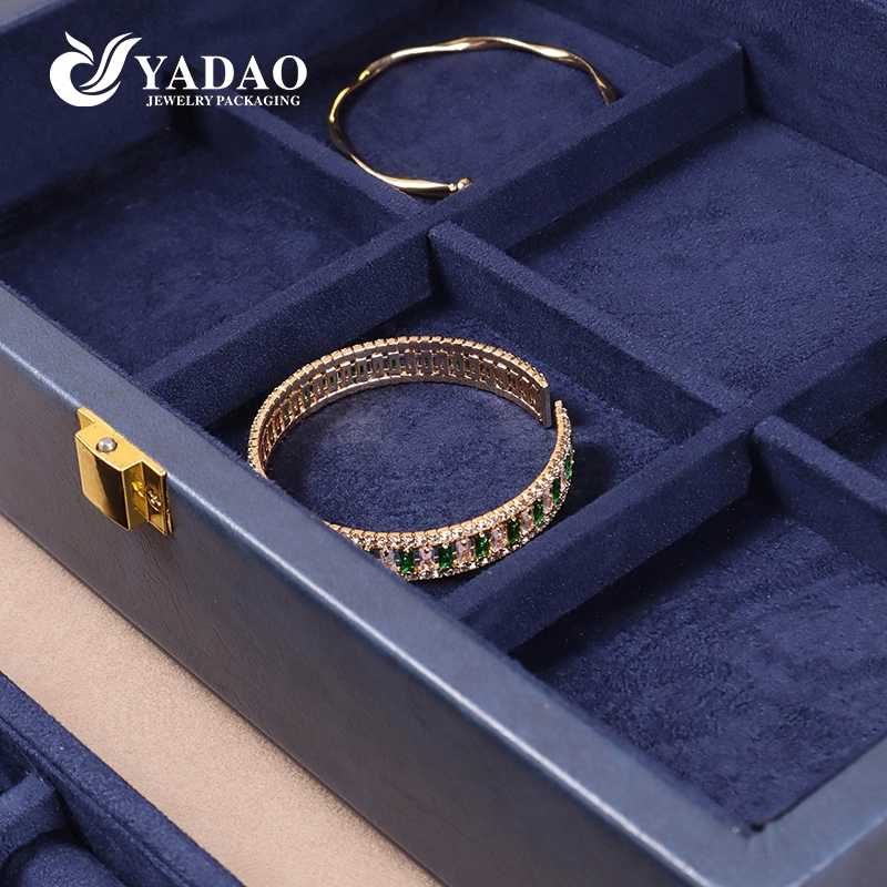Luxury Blue Perkin Buckle Customized PU Leather Jewelry Box with Velvet Lining