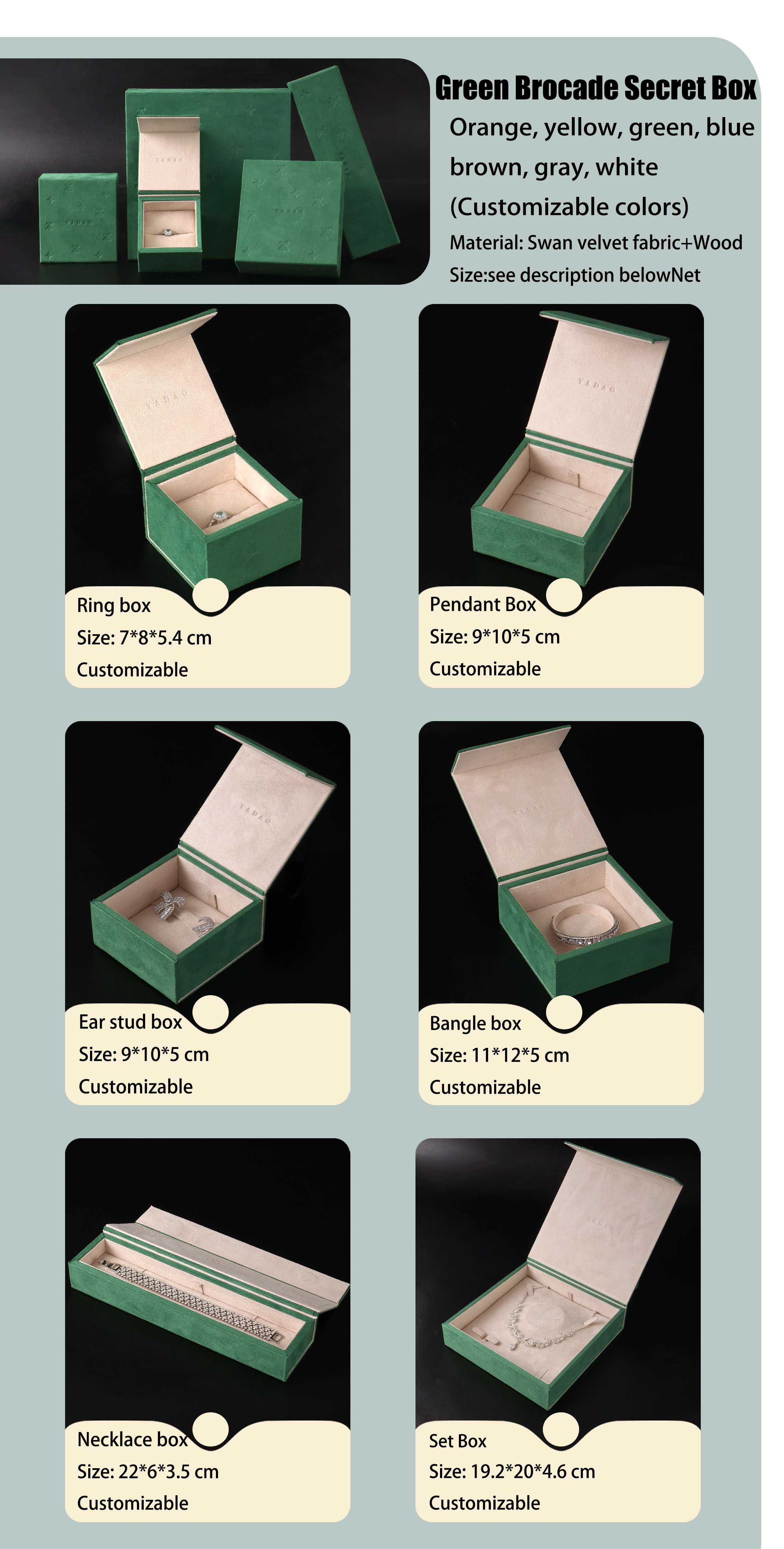 YADAO launches elegant green velvet jewelry boxes for ring, necklace, bracelet and earring storage & packaging.
