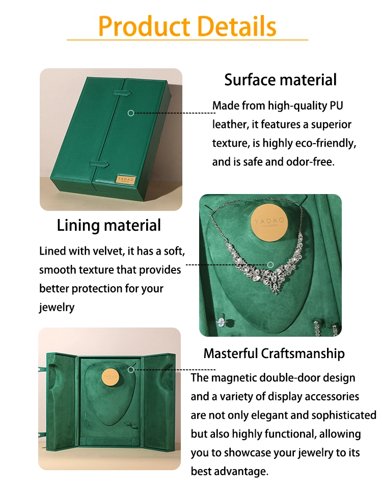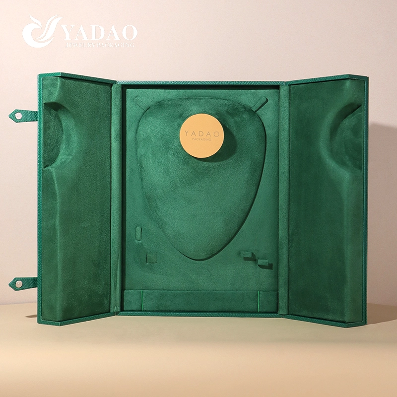 YADAO представляет элегантные шкатулки из зеленого бархата для хранения и упаковки колец, ожерелий, браслетов и сережек.